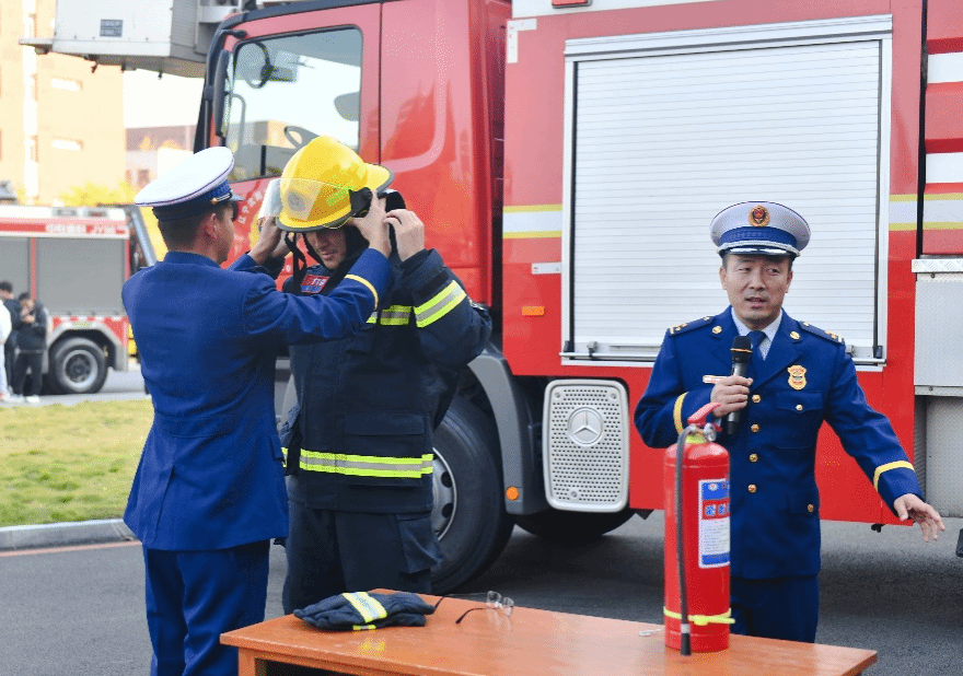 现场紧急情况解除后,消防人员向同学们讲解了火灾逃生时的应急处置方式和求救技巧,并现场演示消防服试穿、高压水枪、灭火器等消防器材的使用方法。各学院学生代表、教职工代表及物业服务人员参与了灭火器实际操作演练,通过实操演练加深掌握了灭火器的使用方法及初起火灾扑救、逃生的要领。