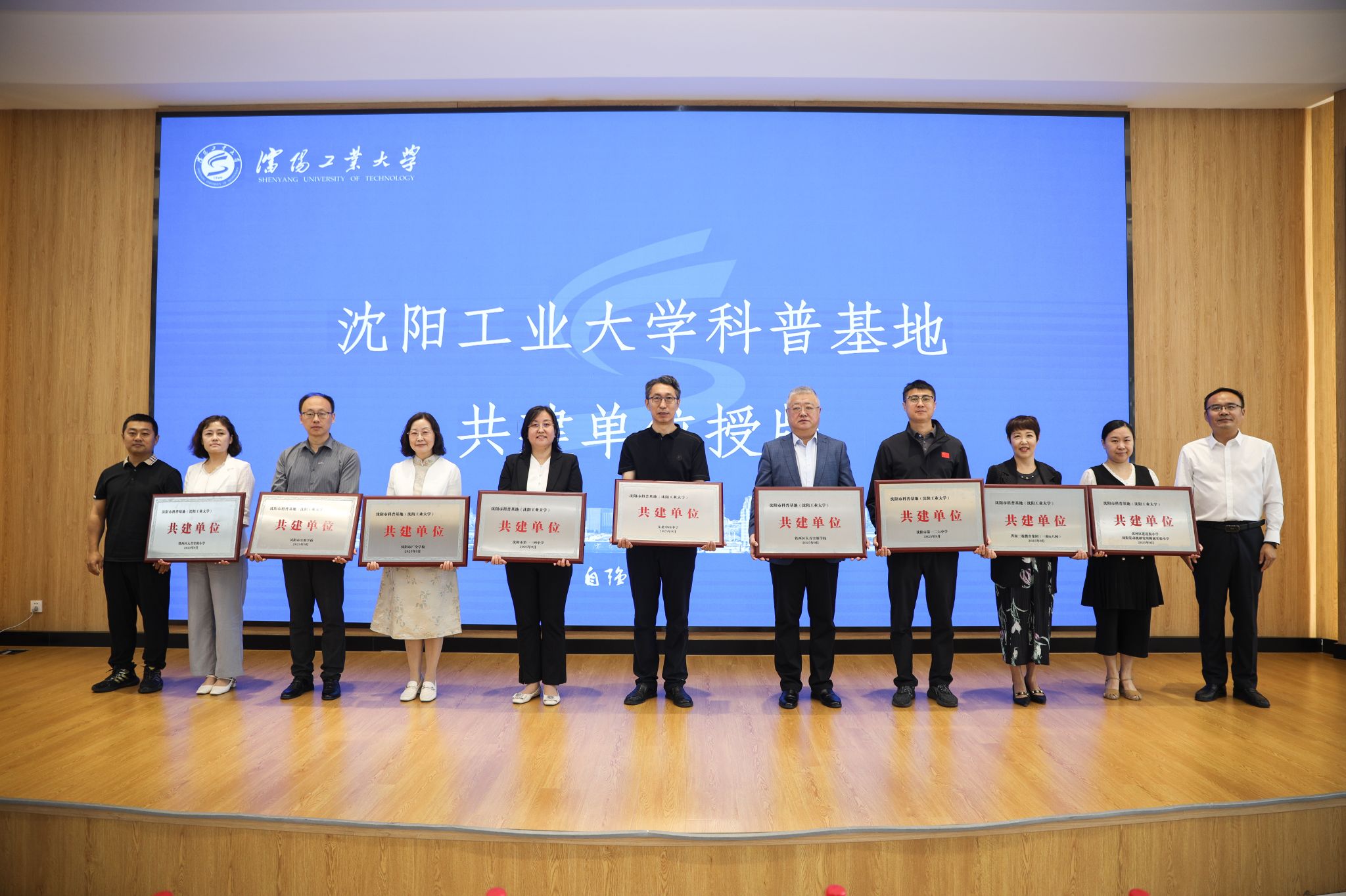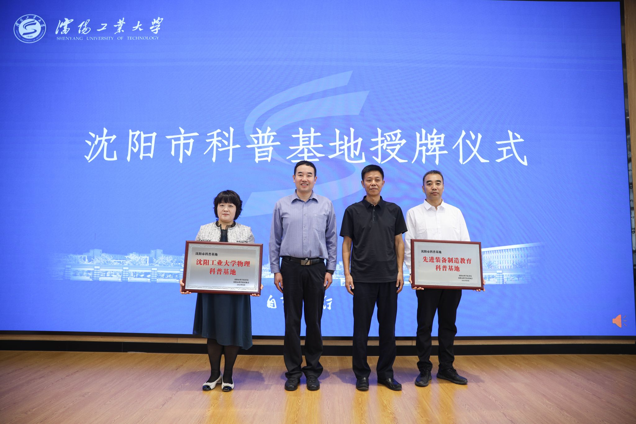仪式上,鞠楠、赵宇为新葡萄88833官网amg授予沈阳市“先进装备制造教育科普基地”和“物理科普基地”牌匾。
