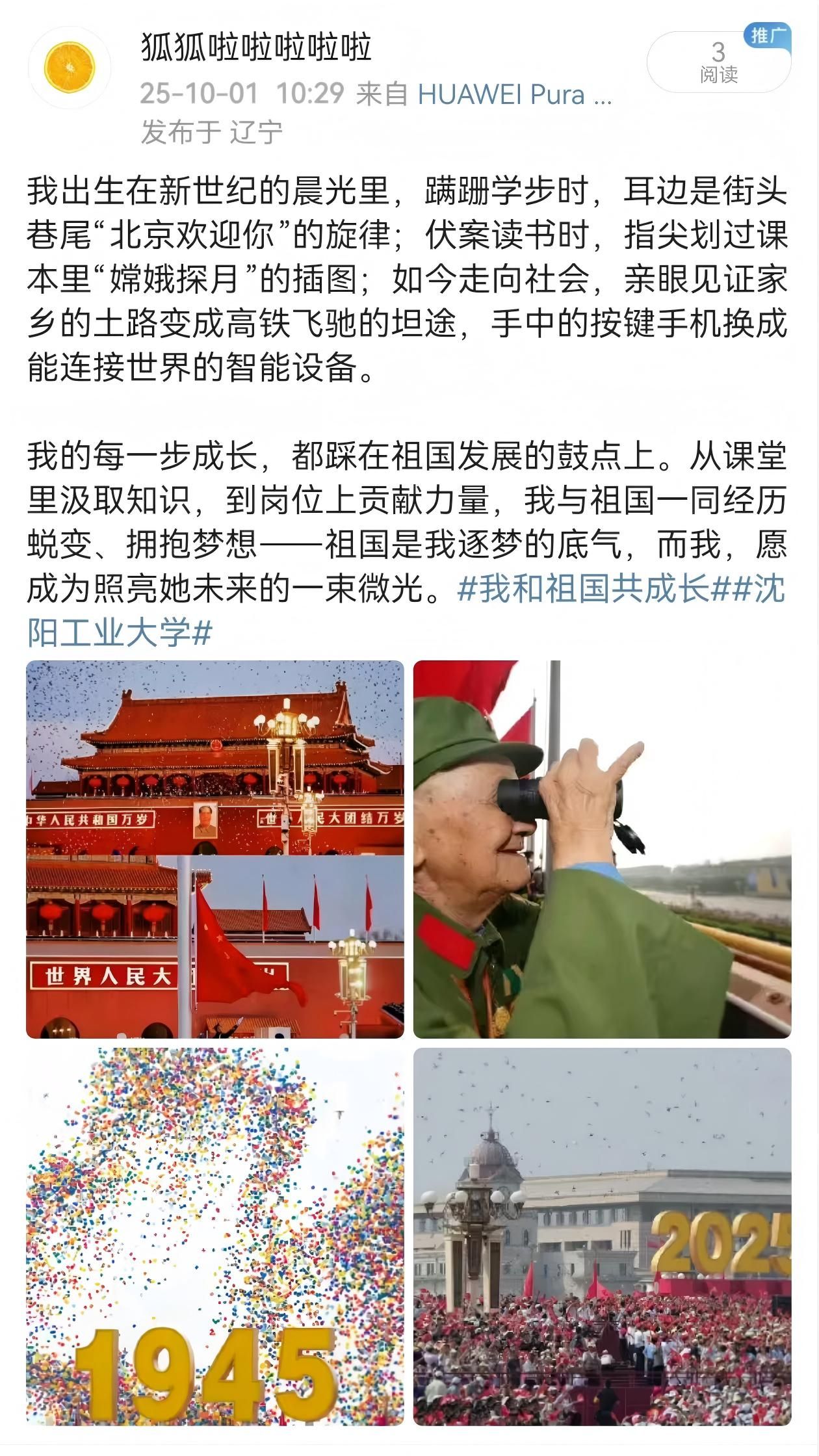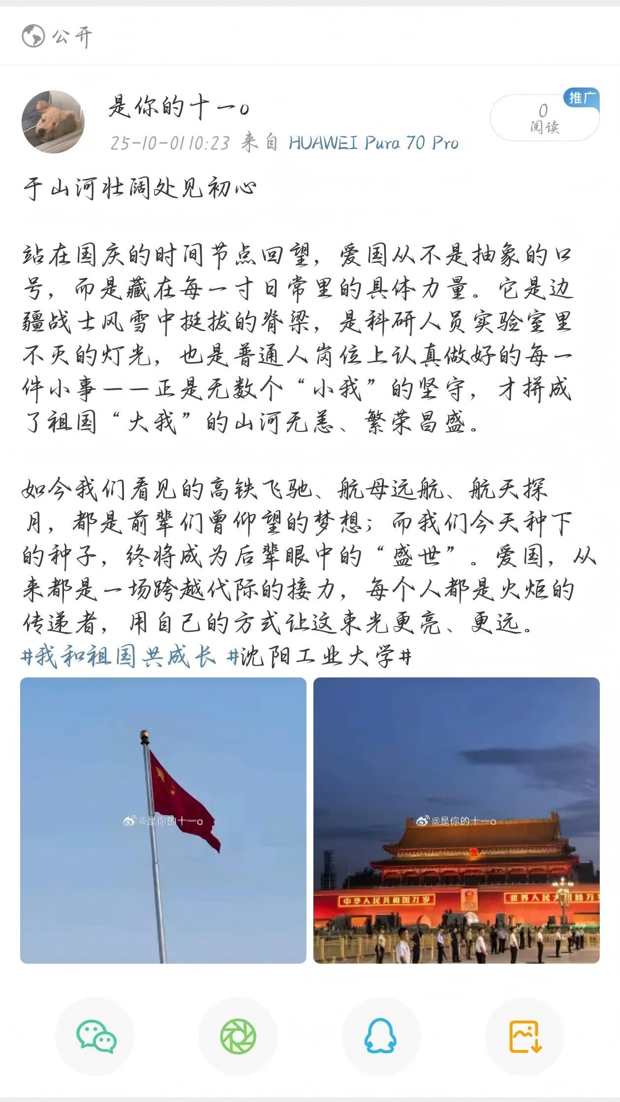为庆祝中华人民共和国成立76周年,厚植青年学子家国情怀,砥砺强国之志,国庆节前后,学校以“我和祖国共成长”为主题举办系列活动,引导广大青年学子将个人理想融入国家发展的宏伟蓝图,营造了“歌颂祖国、奋进成长”的浓厚氛围。